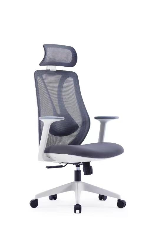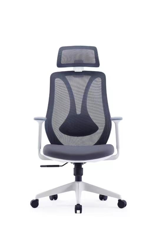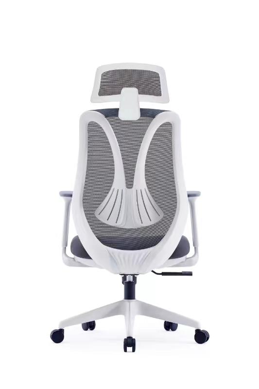 Upholstered with breathable mesh in black with a white frame and nylon base.