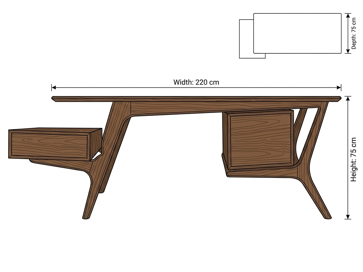 Width: 220 cm | Depth: 75 cm | Height: 75 cm