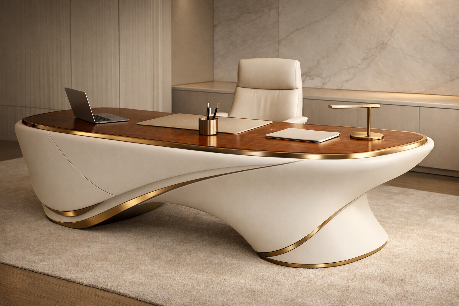 • Sculptural Organic Design: A breathtaking, fluid silhouette with no sharp corners, promoting a serene and innovative workspace.
