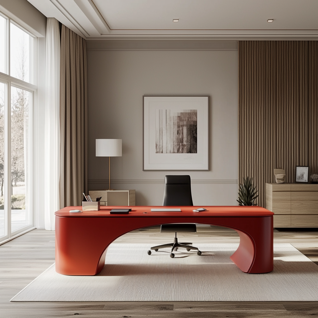 An executive desk that embodies the intersection of functional performance and artistic design. Masterfully crafted using a robust Blockboard core and high-grade MDF,