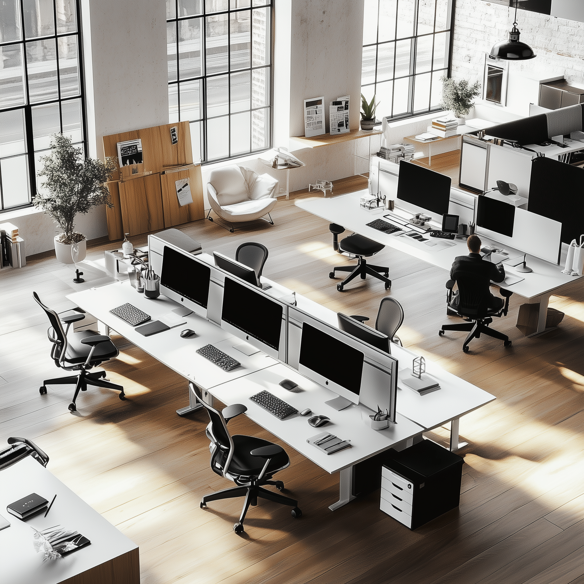 Smart Sound Insulation: Equipped with 35 cm high acoustic partitions, carefully selected to minimize noise and create a quiet environment conducive to focus, while also allowing for visual communication with the team.